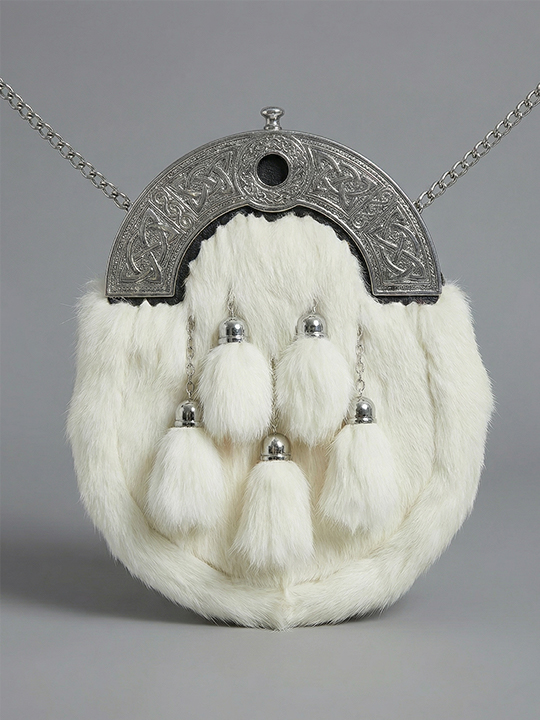 White Rabbit Fur Sporran With Five Tassels - Full Dress