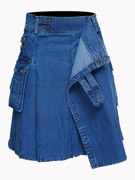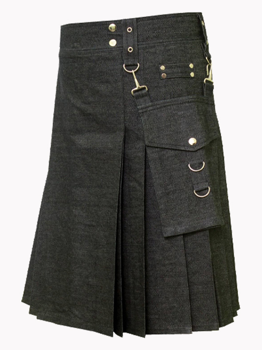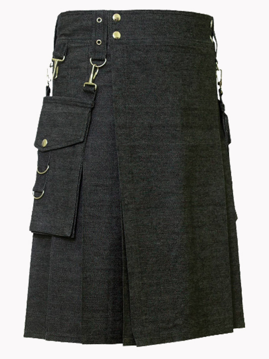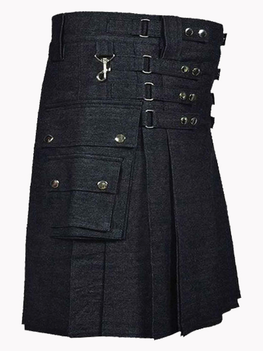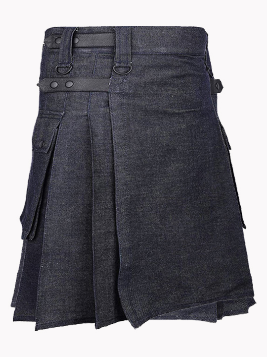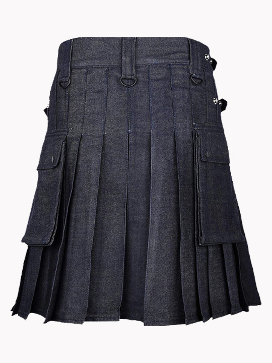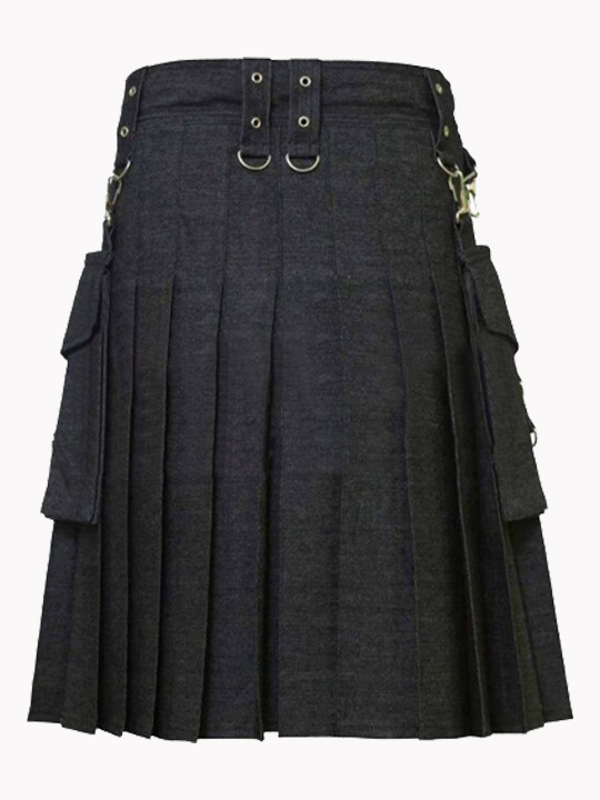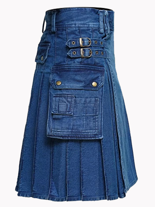 Explore our premium collection of Denim Kilts for Men, designed for those who want a bold and stylish look with everyday comfort. A denim kilt is a perfect alternative to jeans, offering a rugged appearance with flexible movement. Made from durable denim fabric, our men’s denim kilts are ideal for casual wear, outdoor activities, festivals, and streetwear fashion. Each denim utility kilt is crafted with strong stitching, a comfortable fit, and a modern pleated design. Many styles include deep pockets, making our denim kilts with pockets perfect for carrying essentials like phone, wallet, and keys. If you need extra storage and functionality, a denim cargo kilt or denim tactical kilt is the best option. Shop the latest denim kilt skirt designs today and upgrade your wardrobe with a modern kilt that combines durability, fashion, and comfort.