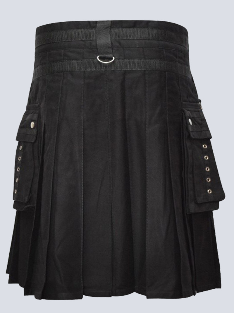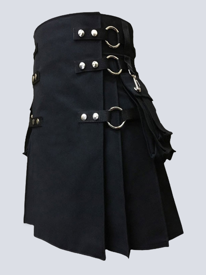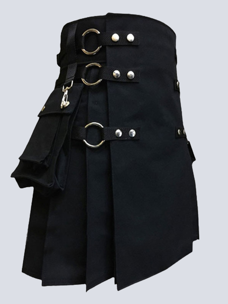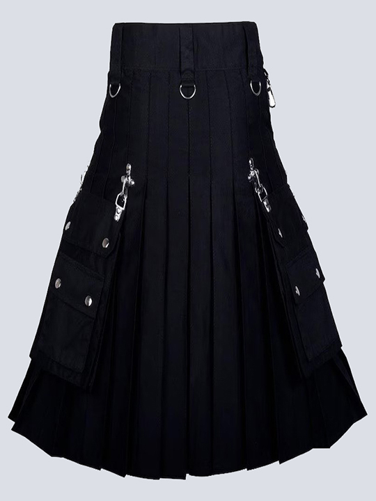 Black Gothic Utility Kilt with Detachable Apron and Metal Hardware