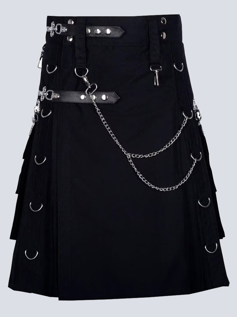 Gothic kilt combine traditional Scottish heritage with bold alternative fashion. Designed for those who want to stand out. A kilt gothic style blends classic pleats with dark tones, metal hardware and striking details. Unlike standard kilts a men's gothic kilt often features chains, buckles and asymmetrical cuts. It creates a powerful look that reflects individuality. This fusion of tradition and modern edge makes gothic kilts for men a popular choice for fashion forward wardrobes.