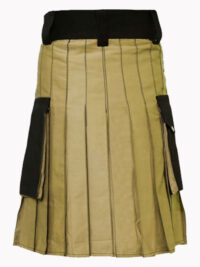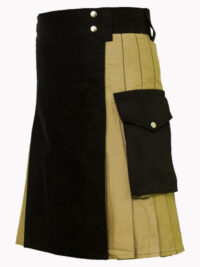 Black and Khaki Utility Kilt is a fantastic design with plain front and khaki pleats. Now you can order this kilt at a very affordable price .