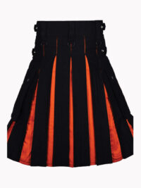 Black and Orange Utility Kilt is a fantastic design with plain front and Orange pleats. Now you can order this kilt at a very affordable price .