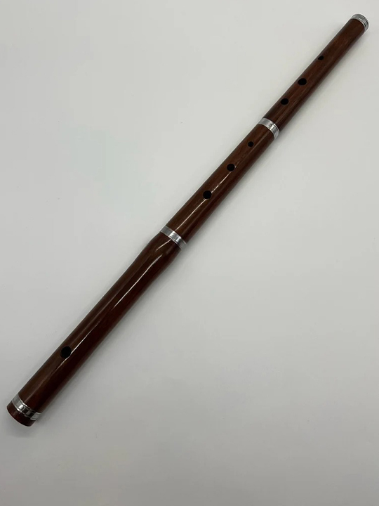 ✦ Silver Nickel Mounts — Elegant & Durable Polished silver nickel ferrule mounts are fitted at each joint connection, providing structural reinforcement where the three sections meet while adding a refined, elegant contrast against the warm brown rosewood body. The silver mounts give the flute a professional, premium appearance that elevates it well above basic student instruments.