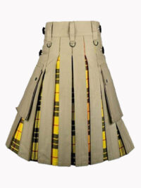 Khaki and Macleod of Lewis Tartan Hybrid Kilt is a fantastic design with plain front and Tartan pleats. Now you can order this kilt at a very good price .