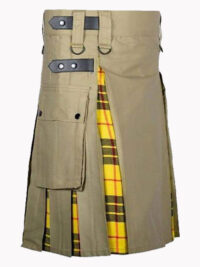 Khaki and Macleod of Lewis Tartan Hybrid Kilt is an alluring product with an eye-catching design. On both sides of the Khaki kilt there are two flap pockets with snap buttons . Now you can order this kilt to look more elegant in your everyday life.