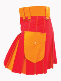 Red and Orange utility Kilt is a modern design with plain front and Orange pleats. Now you can order this kilt at a very good price.