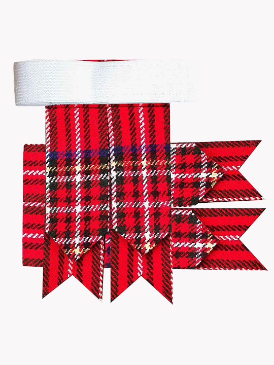 Complete your Highland outfit with our Royal Stewart Tartan Kilt Flashes featuring the iconic red, black, green & white checkered pattern, traditional pointed ends, and an adjustable elastic garter with Velcro closure that fits all leg sizes. Made from premium acrylic wool. Essential for Scottish weddings, Highland games, pipe band performances & ceremonial kilt wear. Sold as a pair!